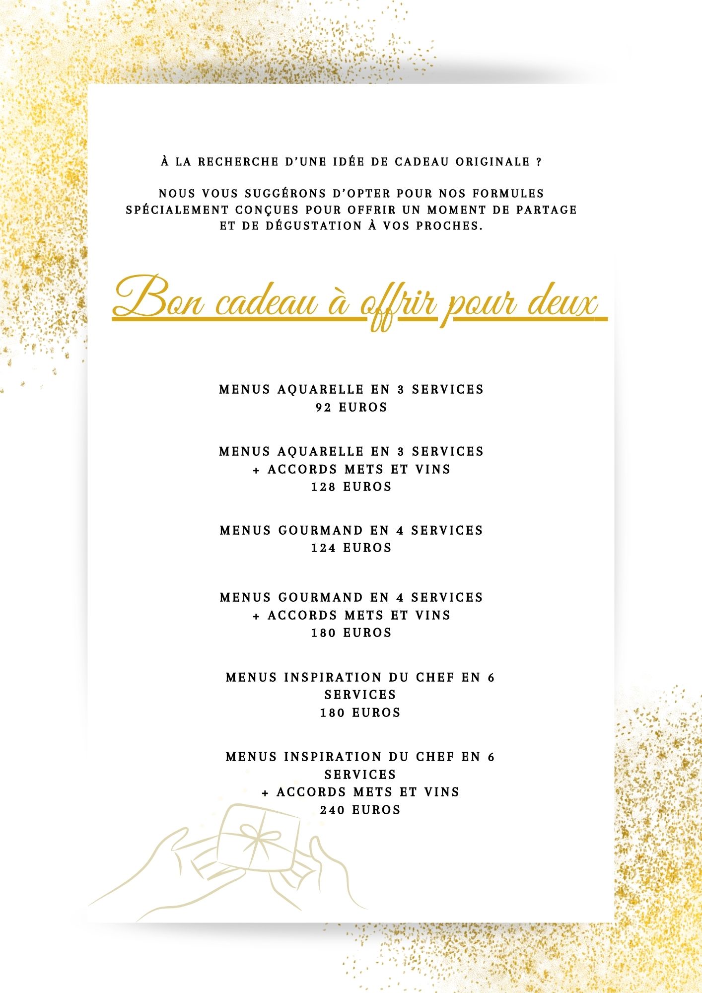 🎁 Offrez un moment inoubliable avec un bon cadeau du restaurant L’ Aquarelle.